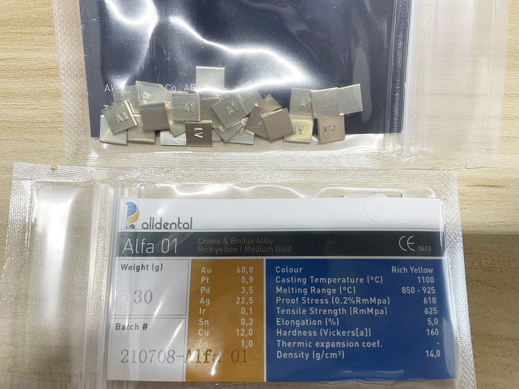| D'oro | 60% | L'allungamento | 5% | Adatto per intarsiature a superficie singola, intarsiature a superficie multipla, onlays, ponti a piccola distanza, corone e corone complete. |