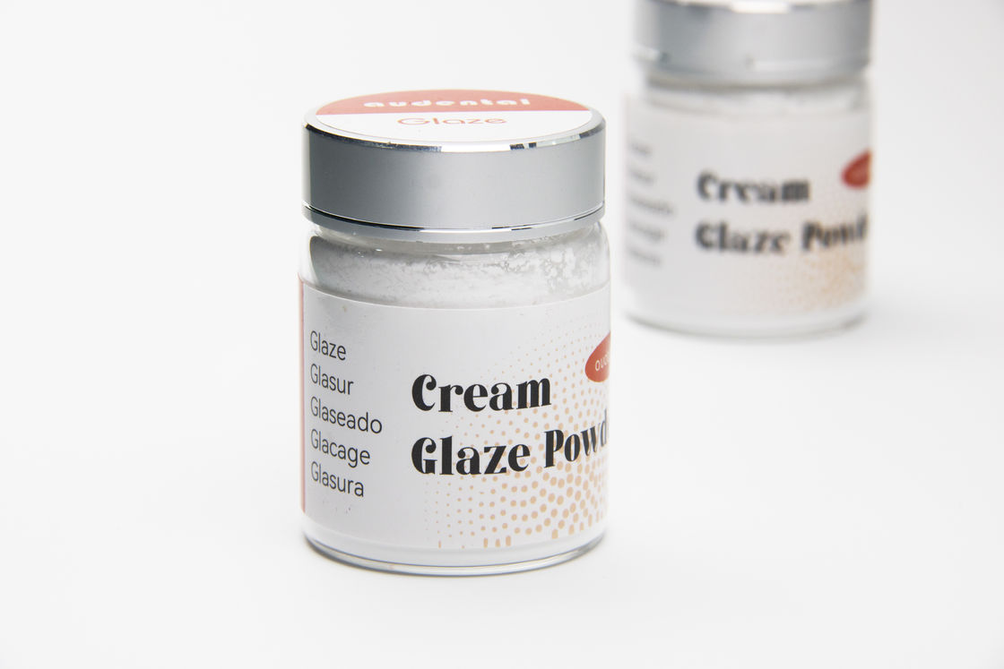 Le polveri di smalto universale Audental sono progettate per smaltire vari tipi di materiali di restauro dentistico in ceramica, come i PFM e i rimedi in zirconia.